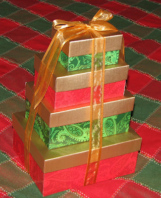 Isn't that pretty??? It's so VanDeventer-ish. :-) These boxes were filled with all manner of tasty chocolates from Harry & David. YUM!