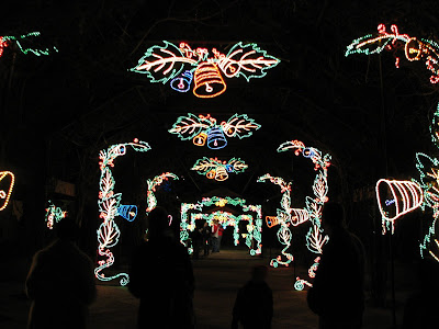 Last night we loaded up and headed into town. I had suggested tuna casserole for dinner and within minutes James said, "Hey... how 'bout we go check out the Bugg Lights tonight--it's probably going to be our only chance.......... and we could grab some dinner while we're there." All inspired by the idea of tuna casserole, no doubt. Ha! Anyway, the Bugg Lights are a tradition that's been going on for over 30 years. Apparently an old couple by the name of Bugg (how sad!) really got into decorating their yard for Christmas. They did it for all those years, but finally got too old to be able to do it. So a nearby school volunteered to take it over and now they set it up there at the school.